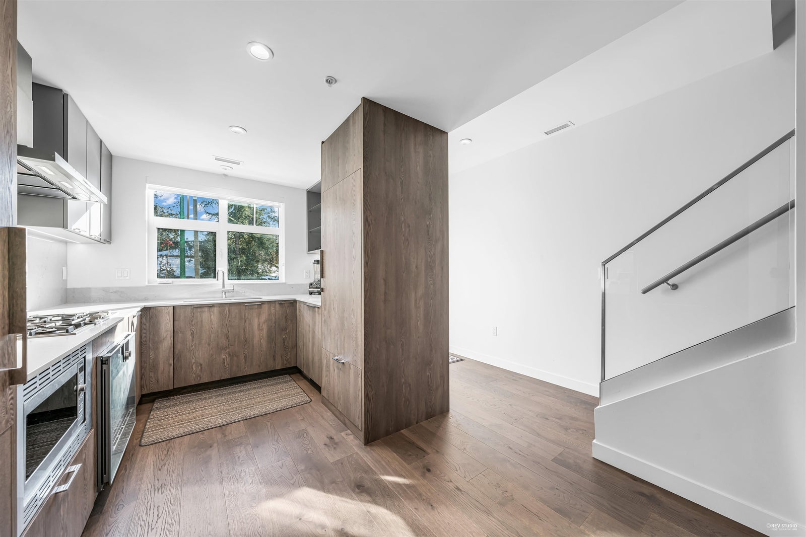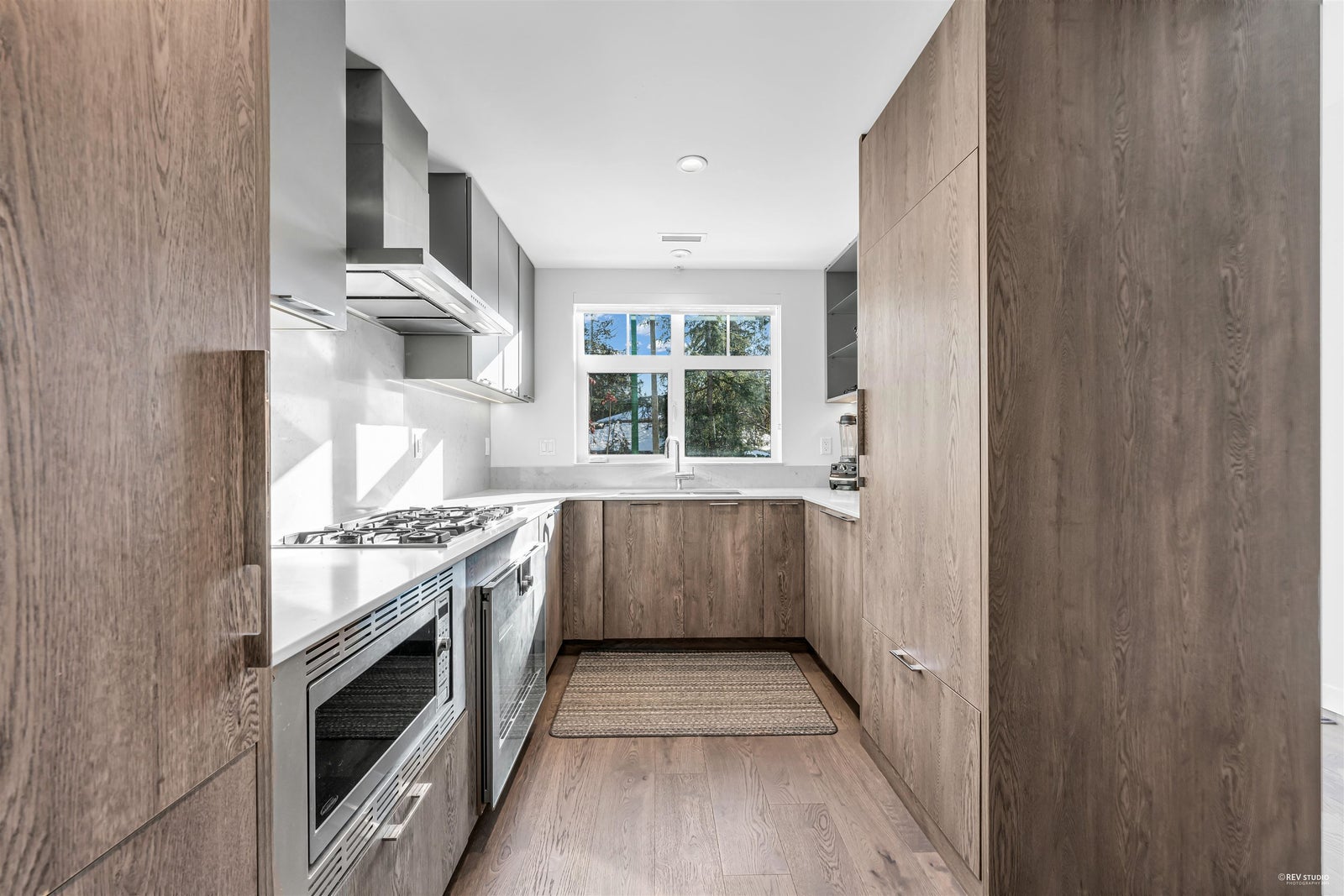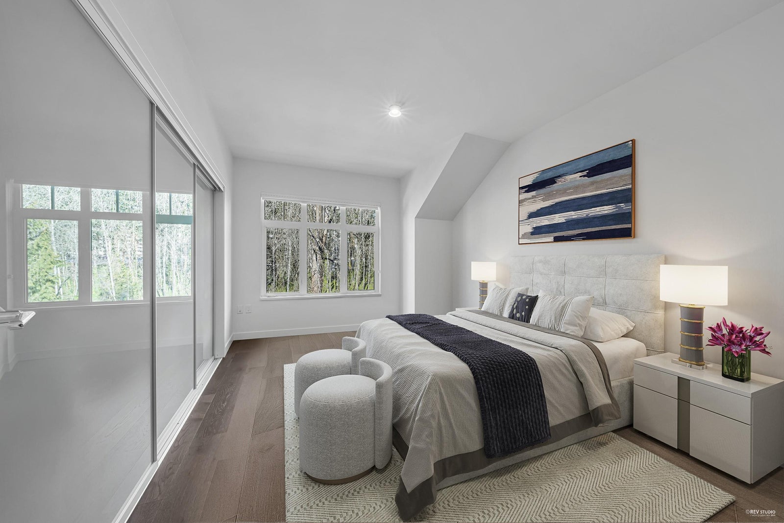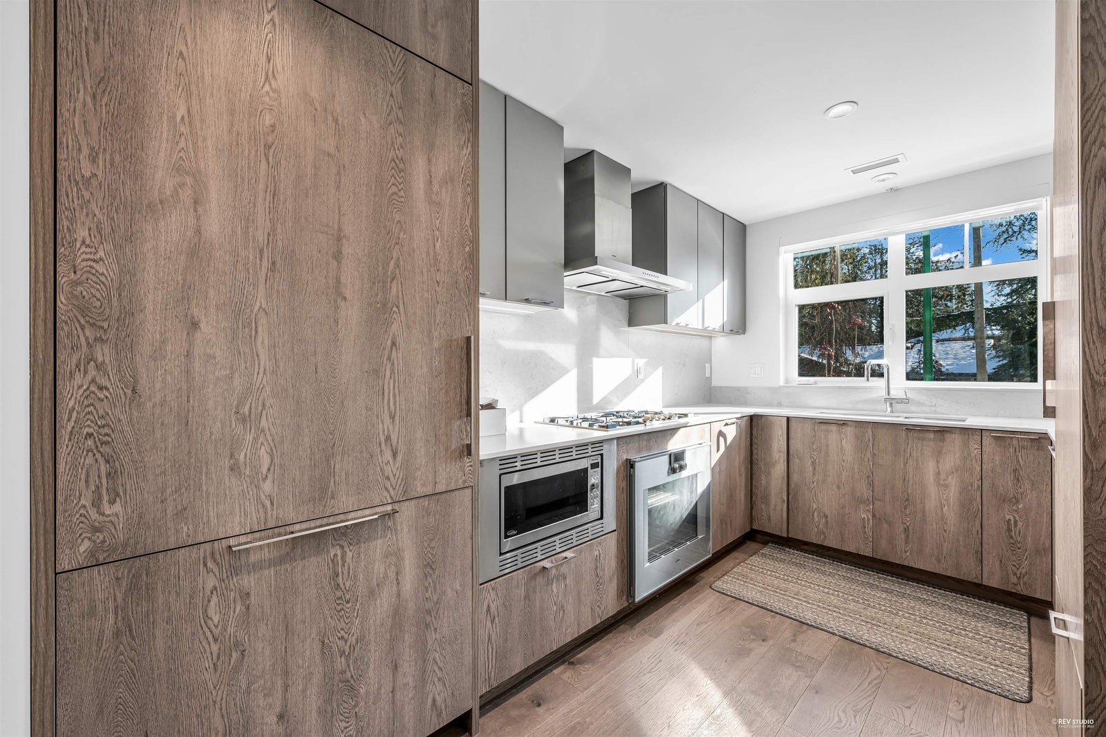 Welcome to Unit 4 at Holland Row—a rare opportunity to own a riverfront townhome in this exclusive 23-home community. This 4-bedroom residence offers the feel of a single-family home, featuring a spacious primary suite with double closets, stunning Capilano River views, and a spa-inspired ensuite with heated floors, a seamless glass shower, and double vanity. The high-end kitchen is equipped with integrated Gaggenau appliances, setting the tone for luxury. Accordion-style doors open to a private patio, seamlessly blending indoor and outdoor living. With both street-level and private garage entry, plus easy access to trails, cafes, transit, and shopping, this is North Vancouver living at its finest.