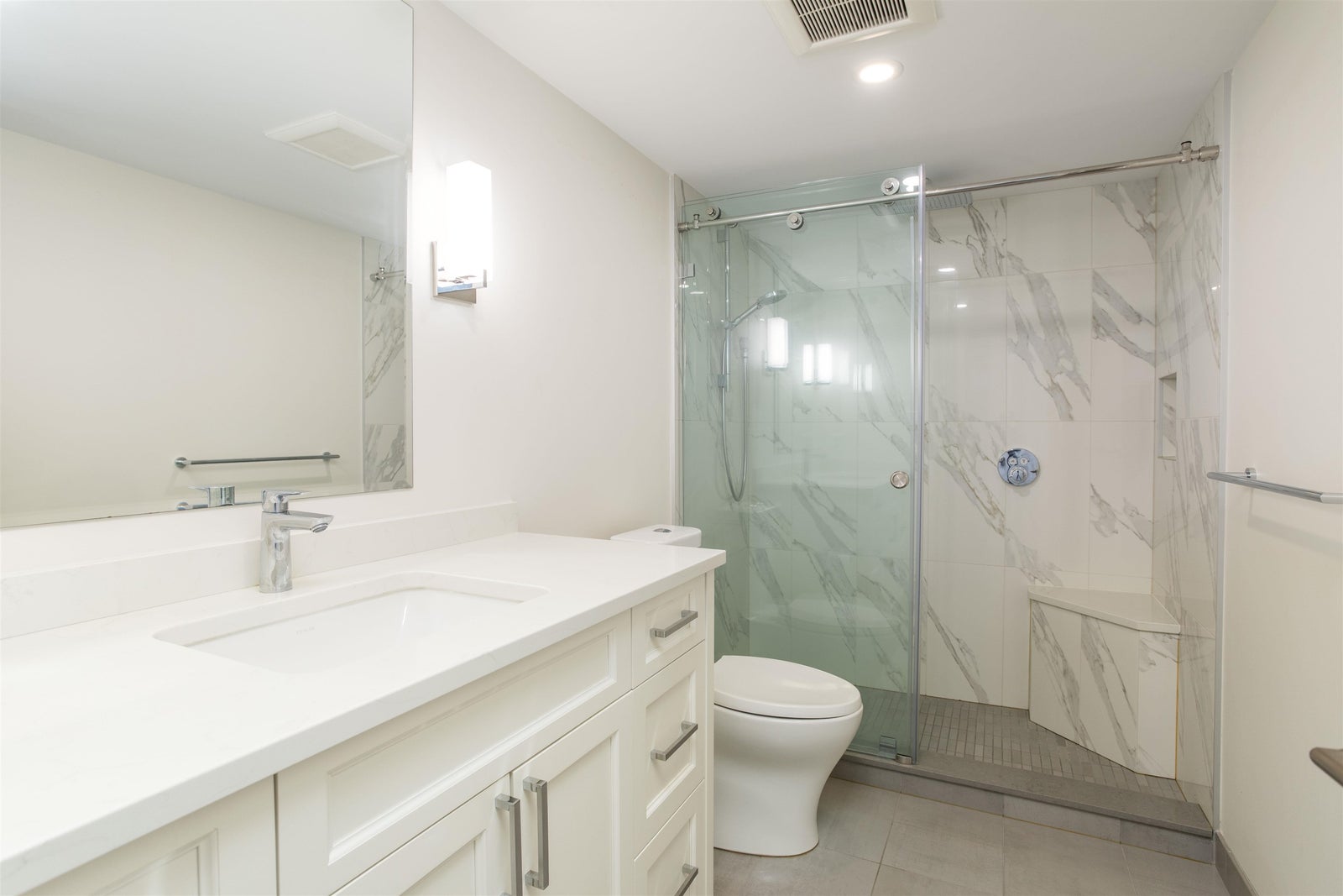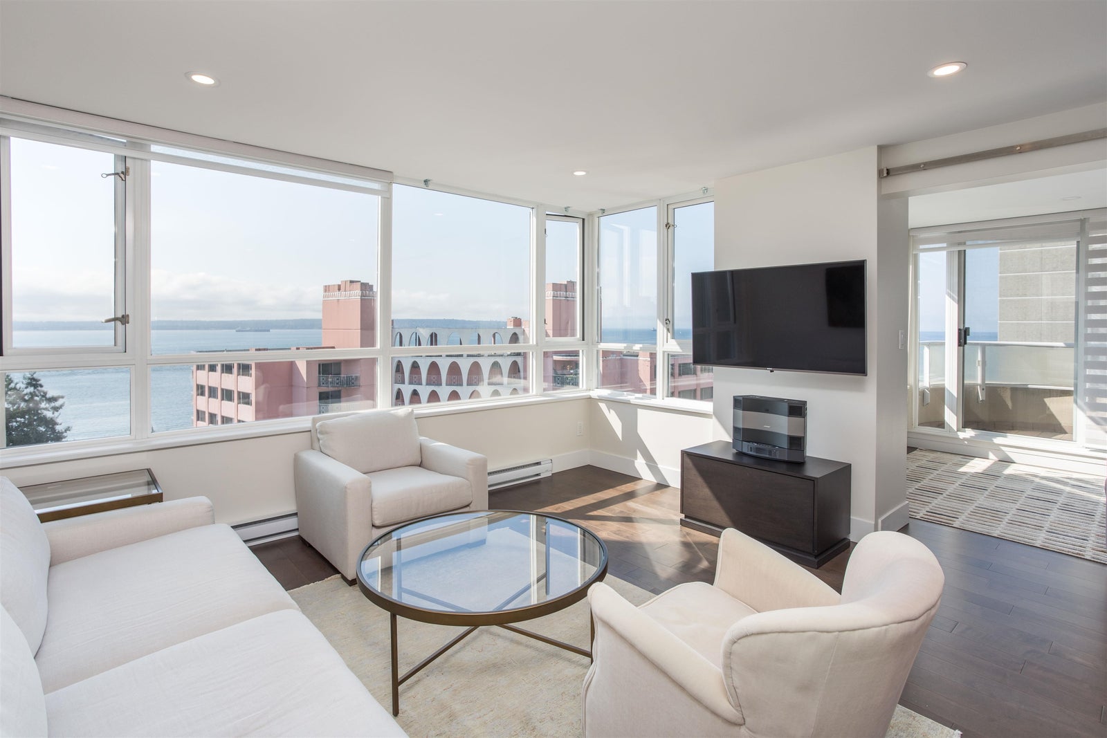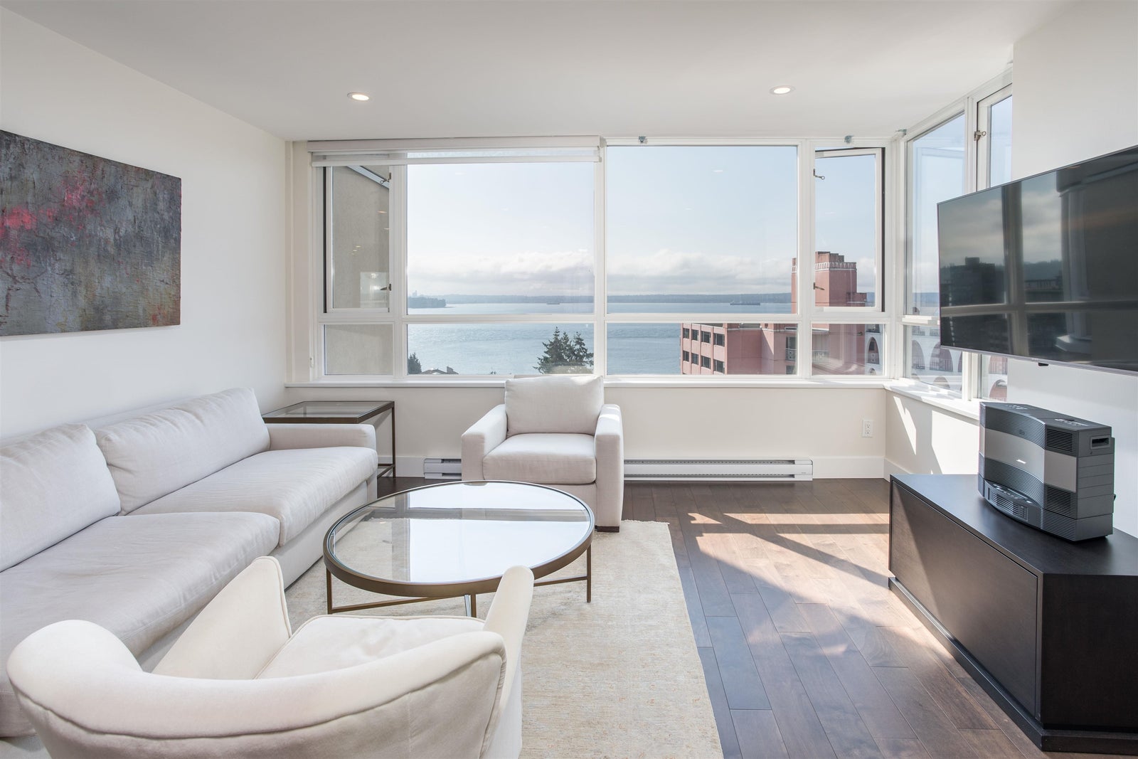 SWEEPING OCEAN & CITY VIEWS & STUNNINGLY ELEGANT RENOVATIONS & UPDATES. Bright and airy with an adaptable plan: 1 bedroom + den that easily functions as a 2nd bedroom. Generous living/dining, a chef’s kitchen with stone counters and quality appliances, spa-like bathroom, built-ins, hardwood, and in-suite laundry. Covered balcony for sunsets & cruise-ship watching. Bellevue Place is a friendly, well-run concrete building: 2 modernized elevators, fitness room, meeting/party room, private garden, EV connection, floor chutes for garbage/green bin. Two parking & storage included. No pets/rentals with restrictions. Wheelchair accessible. Just steps to the Seawall, Rec Centre, Library and Dundarave village conveniences. Call your Realtor to View.