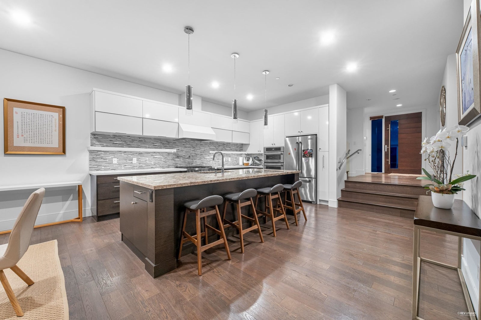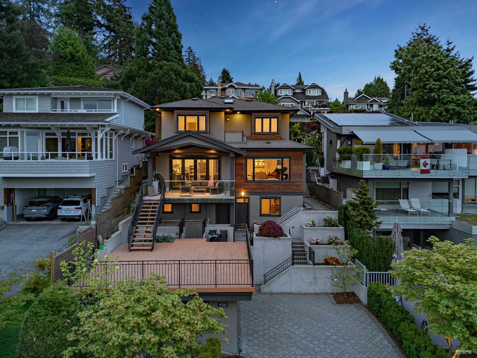 VIEW, LOCATION & QUALITY! Built in 2014, this stunning contemporary home showcases breathtaking southwest views of the ocean, Downtown Vancouver, Point Grey & Vancouver Island. The main floor features a spacious open-concept layout with 10ft ceilings, a designer kitchen with high-end appliances, & Eclipse doors that open to a large sun-drenched deck with built-in BBQ—part of over 900 sqft of deck & balcony space, ideal for seamless indoor-outdoor living & entertaining. Upstairs offers 3 generous bedrooms, each with its own ensuite & beautifully appointed finishes. The lower level includes a media room, 4th bedroom, full bathroom, & laundry, plus a self-contained 1-bedroom suite with full kitchen—perfect for in-laws, guests, or added income. Open house on Sun 2-4pm, Jan 18th.