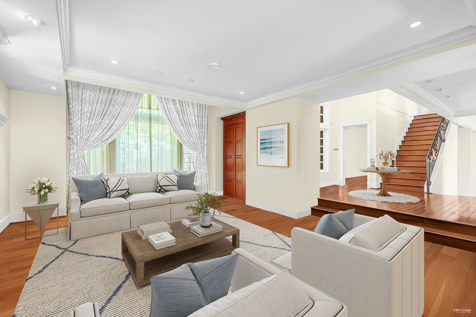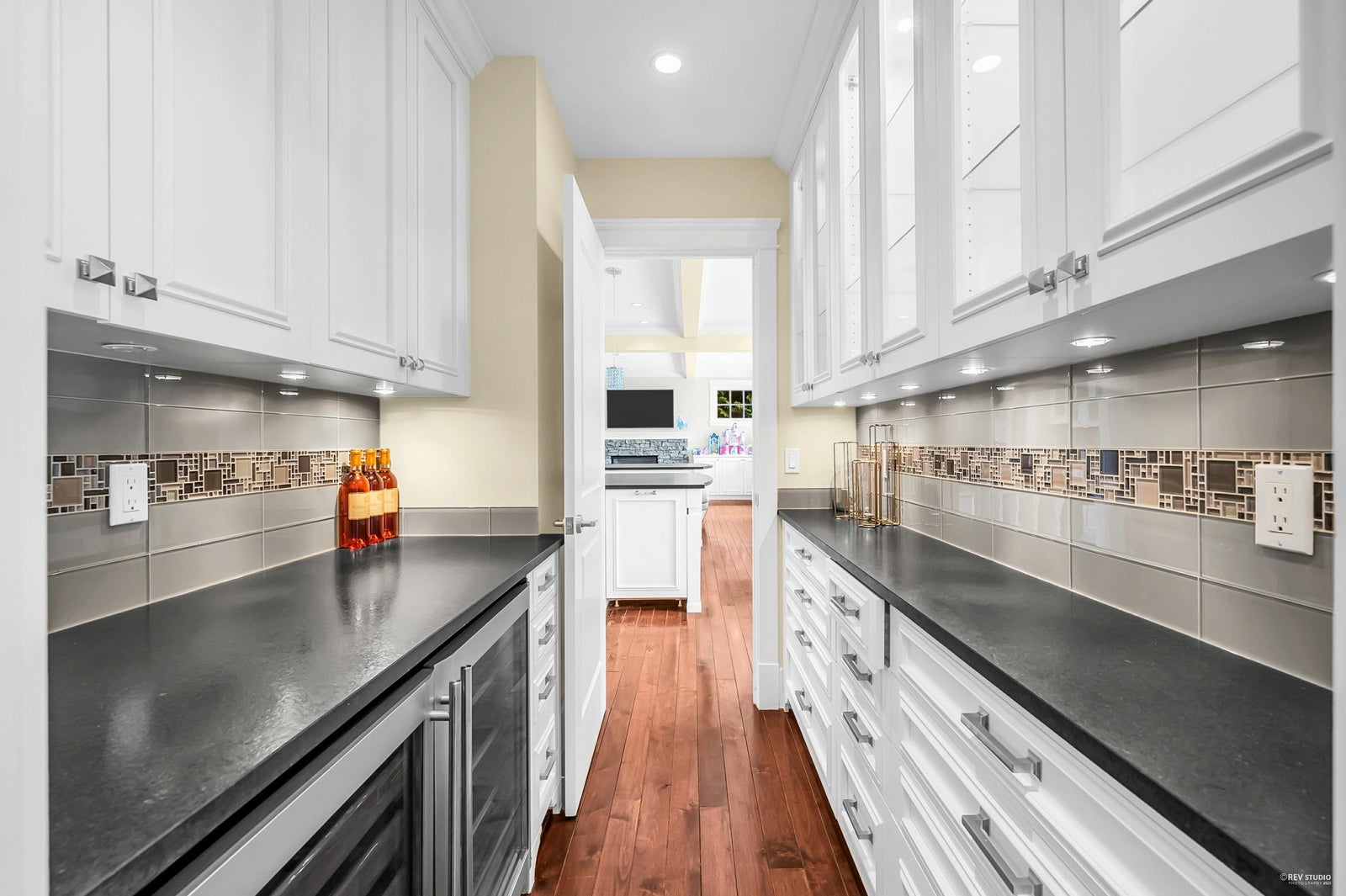 This exquisite custom residence, built by renowned master builder Steven Bradner and designed by Gordon Hylinski, is tucked away on a private, gated half-acre in prestigious Lower Caulfeild. Thoughtfully positioned to capture tranquil ocean glimpses, the home offers over 2,500 sq.ft. of refined main-level living, including a gourmet chef’s kitchen and an inviting family room that seamlessly extends onto an expansive 800 sq.ft. terrace—perfect for entertaining—overlooking the sun-soaked pool and spa.Upstairs, four generously sized bedrooms each feature their own ensuite bathrooms and private balconies, creating a resort-like experience for every family member. The walk-out lower level boasts a spacious rec room with direct access to the pool deck, ideal for indoor-outdoor family living.