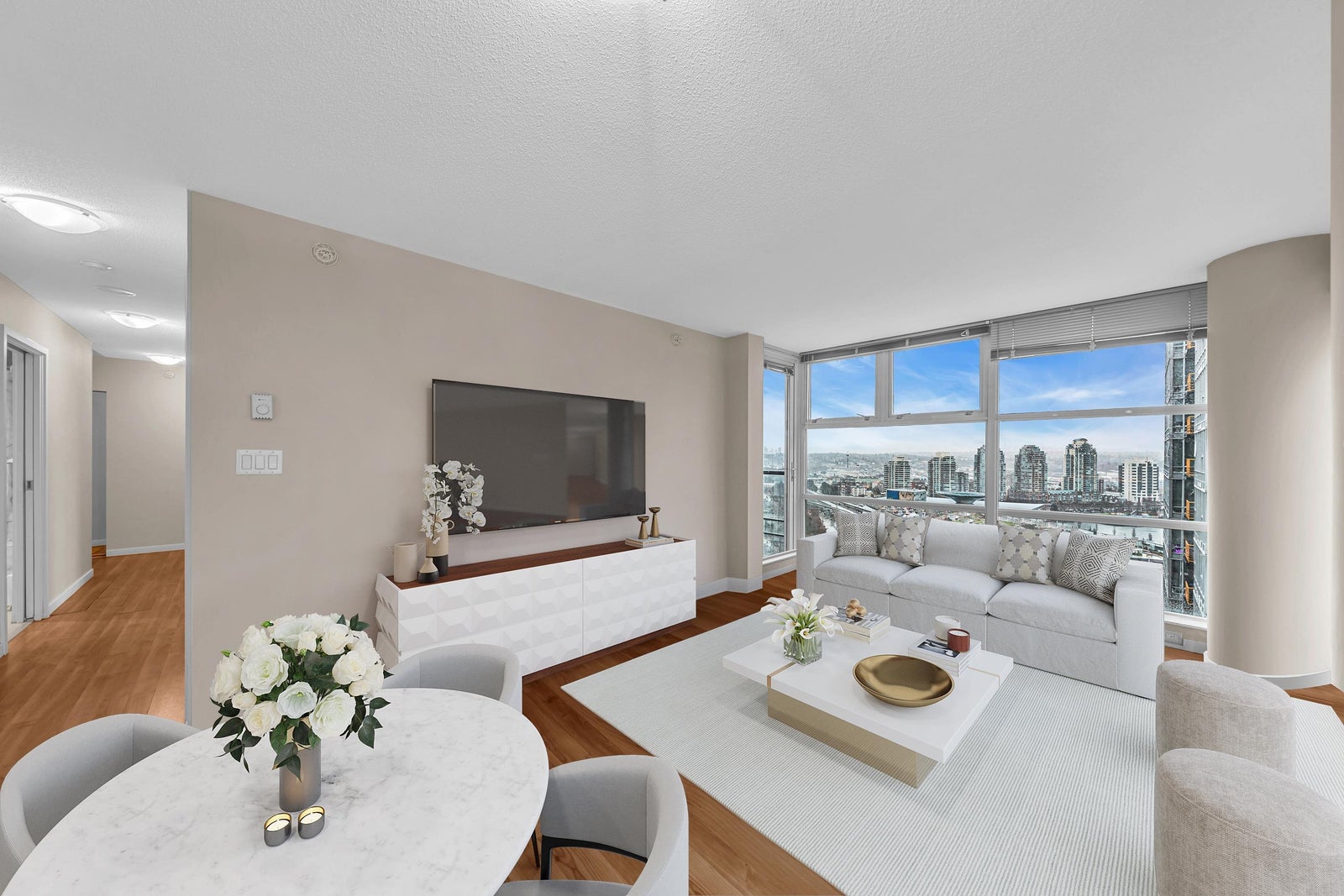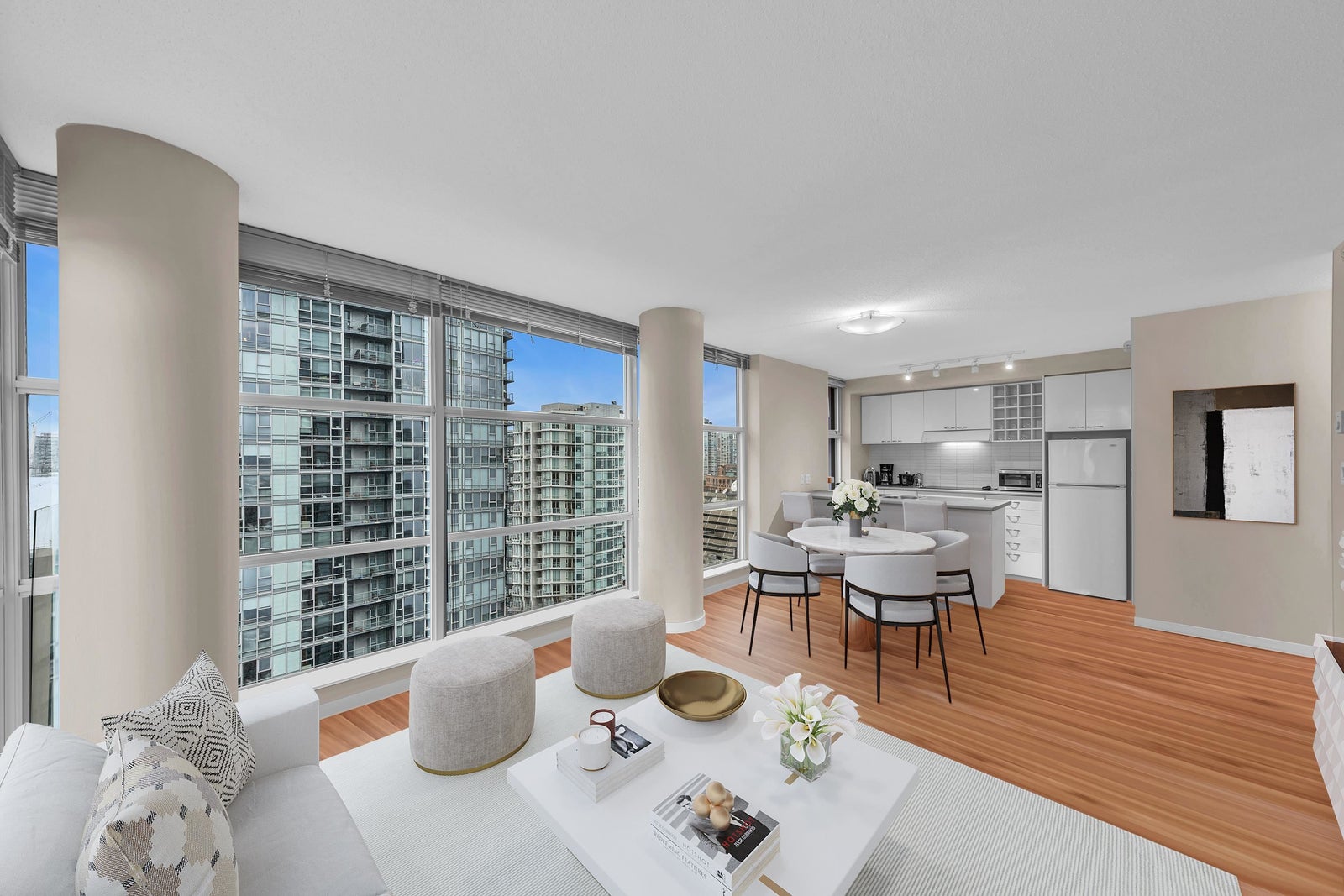Centrally located for the ultimate in City living with AMAZING VIEW, this spacious condo is a sophisticated retreat with 2 bedrooms 1 bathroom plus a bonus den and secured parking. Relax & entertain in the expansive & bright living/dinning room, overlooking Downtown from every room with an on suite laundry. Well appointed open kitchen w/ stainless steel appliances. Recreation facility including indoor pool, sauna, games room, exercise room, concierge & more. Near restaurants, nightlife, cafes, shopping, public transit. With plenty of space for living and working and an ideal location for experiencing City life, this sleek condo is waiting for you.
